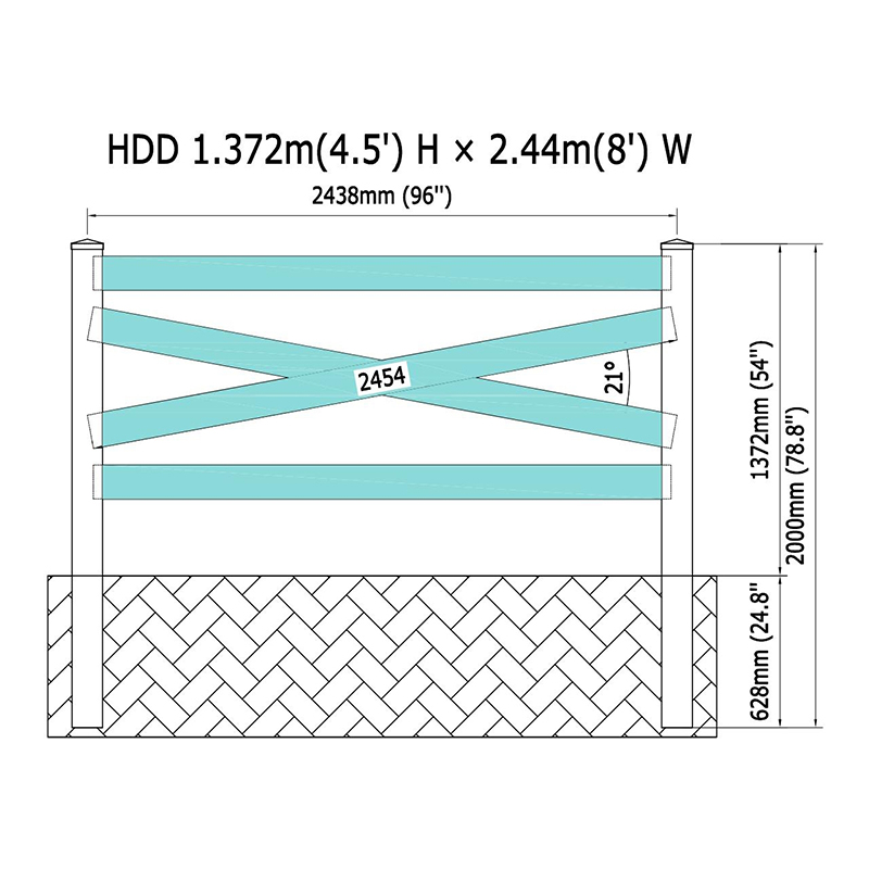 | Posta | 4 "x 4" eller 5 "x 5" eller valfritt x 78 '', förbehålls som linje, slut, hörn, 3-vägar eller tomma. |