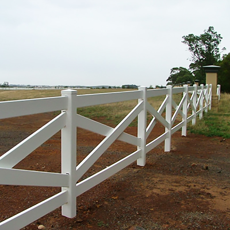 PVC Cross Horse -staketet, sakkunnigt utformat för att kombinera funktionalitet och estetik. Finns i klassiska färger som vit, solbränna, grå och grädde, detta staket förbättrar inte bara skönheten i din egendom utan erbjuder också oöverträffad hållbarhet och styrka.