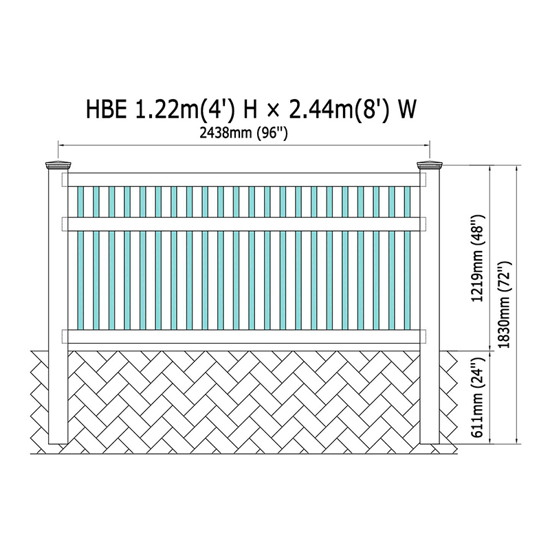 | Posta | 4 "x 4" eller 5 "x 5" eller valfritt x 72 '', förbehålls som linje, slut, hörn, 3-vägar eller tomma. |