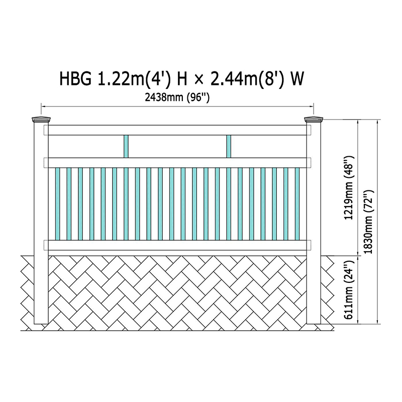 Designen är klar med attraktiva postkåpor, inklusive New England Cap, Flat Cap och Gothic Cap, så att du kan anpassa utseendet på ditt staket ytterligare. Den nedre järnvägen mäter 2 "x 3-1/2" och kommer förhandsvis på 94 tum för enkel montering, medan de övre och mellersta skenorna också är förhandlade för enkel installation, mäter 2 "x 3-1/2" vid 94 tum vardera.